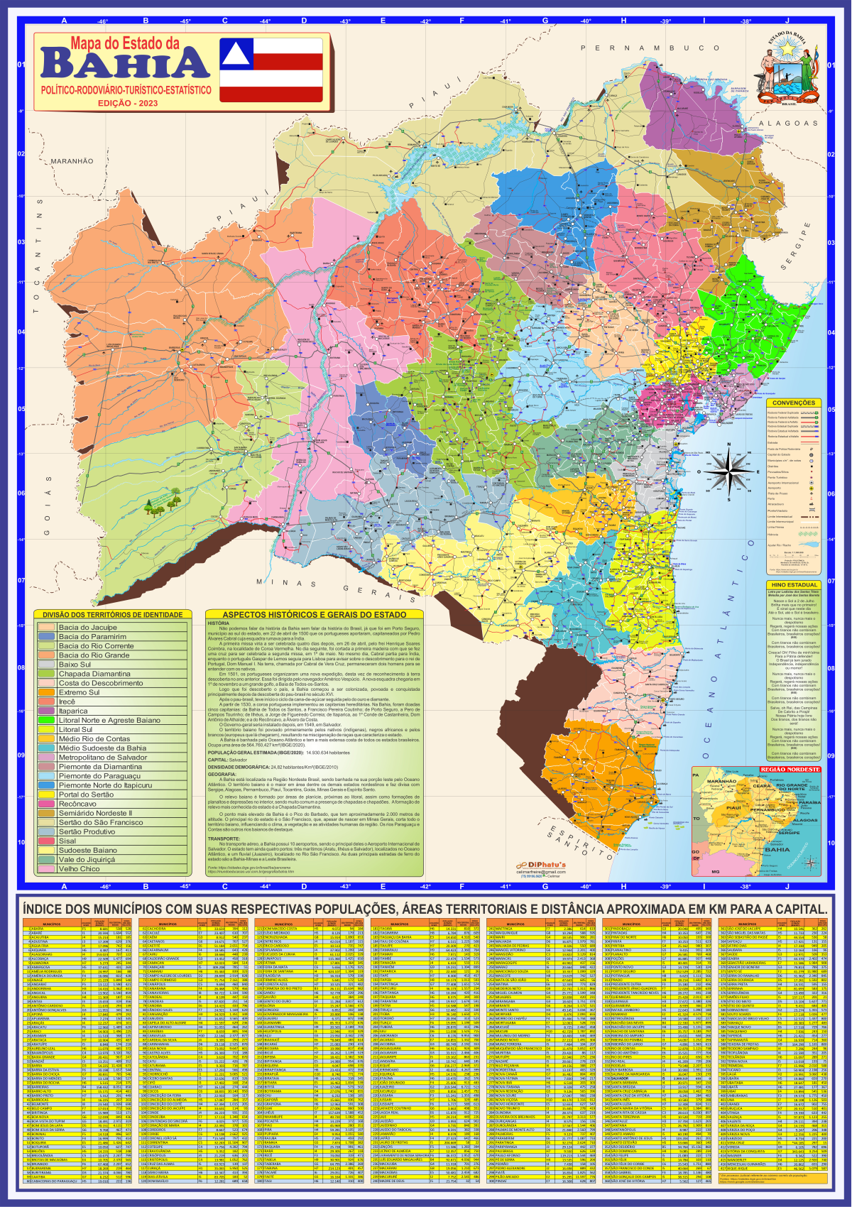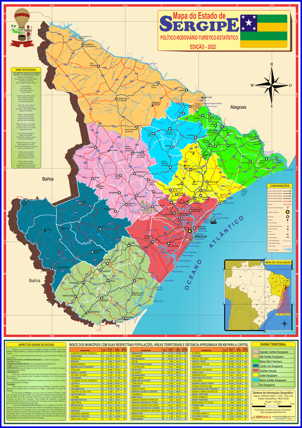 O mapeamento estadual, além da divisão regional, engloba a parte política, administrativa, rodoviário e física. Acrescentamos informações relevantes como: número da população, número de eleitores e os aspectos gerais do estado.